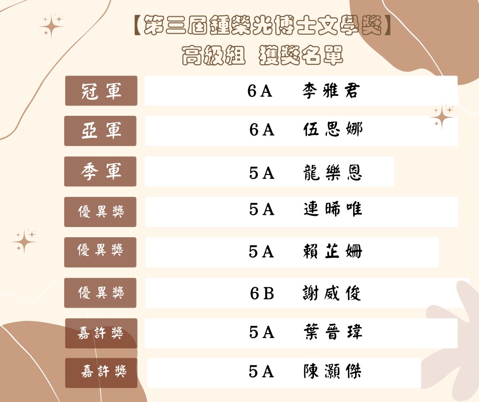 第三屆鍾榮光文學獎得獎名單公佈